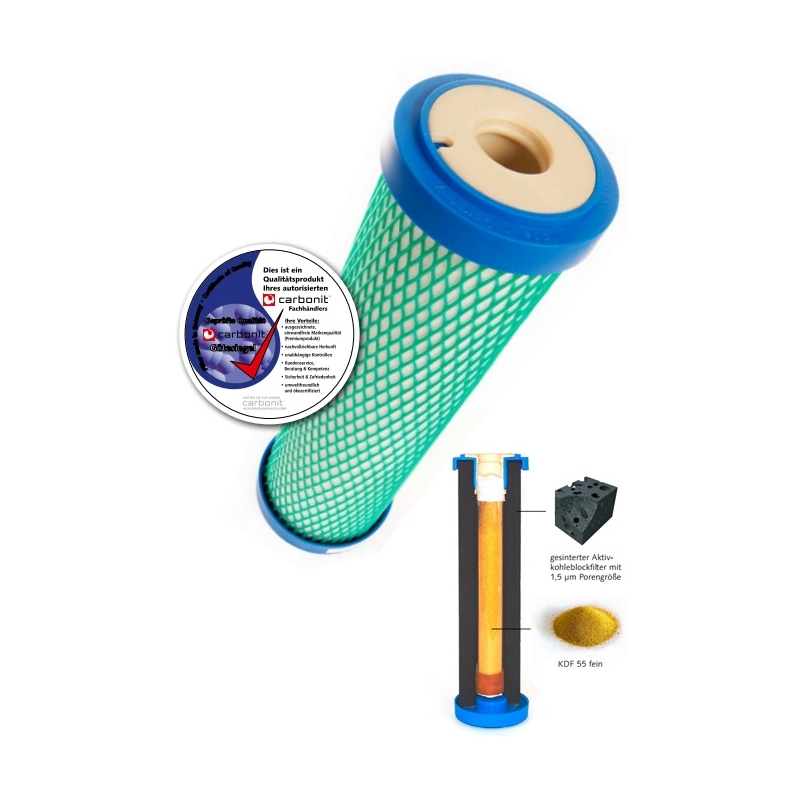 Die neue IFP KDF ist eine kombinierte Aktivkohle-KDF-Patrone. Sie verbindet die besonderen Eigenschaften eines gesinterten Aktivkohle-Monoblocks mit der patentierten Technologie eines in den USA durch die NSF® zertifizierten Filtergranulates, KDF 55. Der außenliegende Aktivkohleblock von 1,5 µm Feinheit sorgt für die Adsorption der im Wasser gelösten organischen Schadstoffe, hormonartige Substanzen, Phthalate, Medikamentenrückstände, Pestizide, Chlor etc. und der Filtration von Partikeln, während das KDF 55-Granulat im Zentrum der Aktivkohle im Anschluss der Entfernung von gelösten Metallen bzw. Metallverbindungen dient.